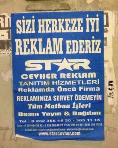 “Heryer”, “herşey”, “bi” yazıp duran reklamcılardan, noktalama işaretlerinde yüksek hassasiyet beklemememiz gerekiyor anlaşılan. “Herkez”i bilemem ama çöpüme talip olan “Parex”, öncelikle noktalama işaretlerini doğru dürüst kullanmayı bilen bir “reklam ajansı” bulsun, sonra çöplerime talip olsun!