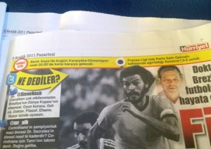 İlk görselimiz 5 Aralık 2011 tarihli Hürriyet’ten geliyor. “Tabela” değilse de “yazım hatası” kapsamında evlere şenlik iki hata: İlki “Giresinspor”, ikincisi de “Paris Sain Gernain”!