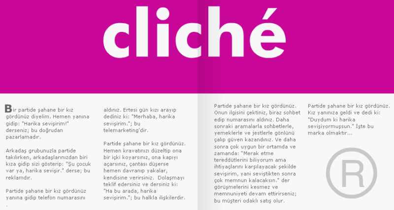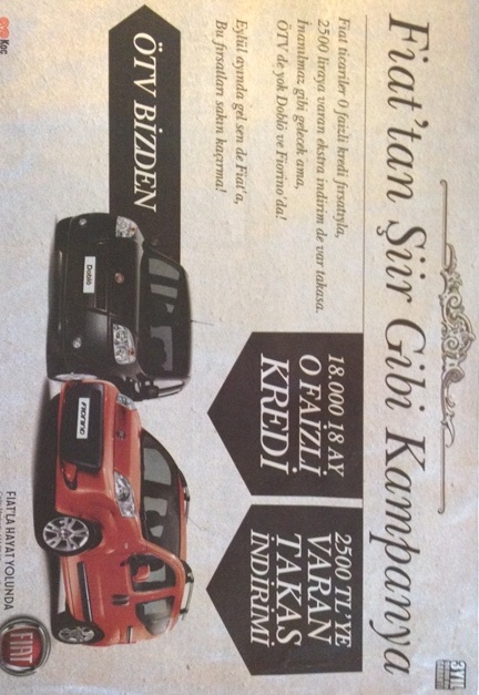 19 Ekim 2012 tarihli Hürriyet’te tam sayfa çıkan bu ilanın “body”sindeki çürükler, yırtıklar, şişlikler insanın içini parçalayacak nitelikte.