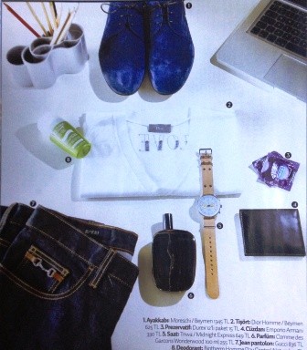 Doğuş Grubu’nun “erkek dergisi” GQ’nun erkek milletine yönelik bakışını ve dizayn ettiği “gecelerin adamı”nın “olmazsa olmaz”larını sıralayalım: 1- Ayakkabı. 2- Tişört. 3- Prezervatif. 4- Cüzdan. 5- Saat. 6- Parfüm. 7- Jean pantolon. 8- Deodorant. Yuvarlak bir hesapla 4.000 liradan fazla para dökmek gerekiyor bunlara.