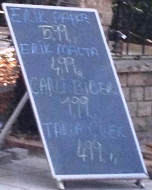 “Malta Eriği” yazamayan kafadan, “9,99 TL” yazmasını da beklememek gerekiyor haliyle. Avrupa ile entegre olabilmek için (!) “TL 9,99” yazılmasını buyurdu T. C. Merkez Bankası’nın yetkilisi. Türkiye Kasaplar Federasyonu, kompozit dolguların birim fiyatını ne zaman belirlemeye başlayacak acaba?