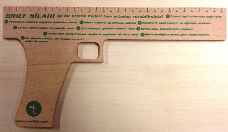 Fikir iyi de “briefle” ve “briefe” olmuş mu hiç? Ecnebi kelimelere ek getirdiğinizde apostrof (“kesme imi”) kullanmayı ihmal etmemeniz gerekir. Güzelim “BRIEF SİLAHI”nın birkaç mermisi karavana maalesef. Ha gayret, olacak. Bu arada, 10 maddeyi de çok tuttum. Bilhassa 6. maddeyi…