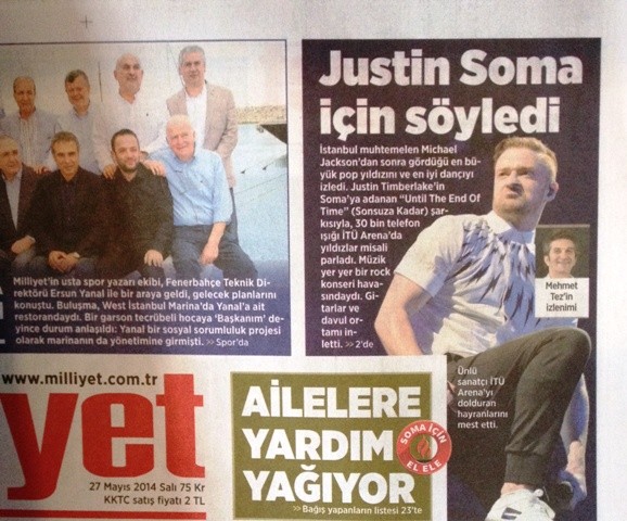 Milliyet gazetesinin web sitesindeki utanılası cümle düşüklüklerine, yerlerde sürünen noktalama yanlışlarına alışkanlık kesbetmiş vaziyetteyiz elhamdülillah! Ancak Maslak İTÜ Arena’yı sallayan Justin Timberlake efendinin konser haberini kaleme alan Mehmet Tez’in (hayır, kelime oyunu yapmayacağım) “Justin Soma için söyledi” başlığından bir virgülü esirgemesi müzik dünyasına “Justin Soma” adlı bir şarkıcıyı armağan etmesiyle neticelenmiş.