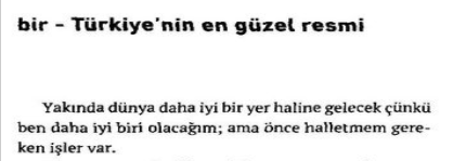 “Sanıyorum şunu da vurgulamak gerek. Edebiyatta anlam paragraftadır, hatta metnin bütünündedir. Anlamı tek tek cümlelere yüklemeye kalkışmak, reklam spotu gibi cümleler kurmak, bunların içi dolu bile olsa öyküye, romana hizmet etmez.”